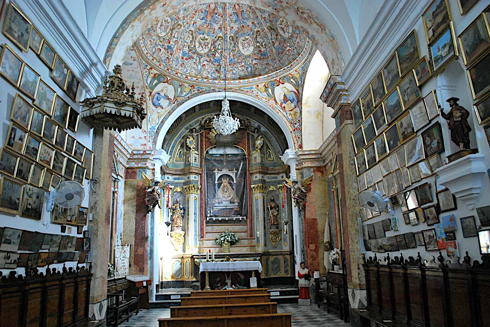 A sus pies, el templo exhibe una de las colecciones más ricas de exvotos pictóricos de Andalucía: pinturas de agradecimiento a la Virgen que datan desde mediados del siglo XVIII hasta la actualidad.